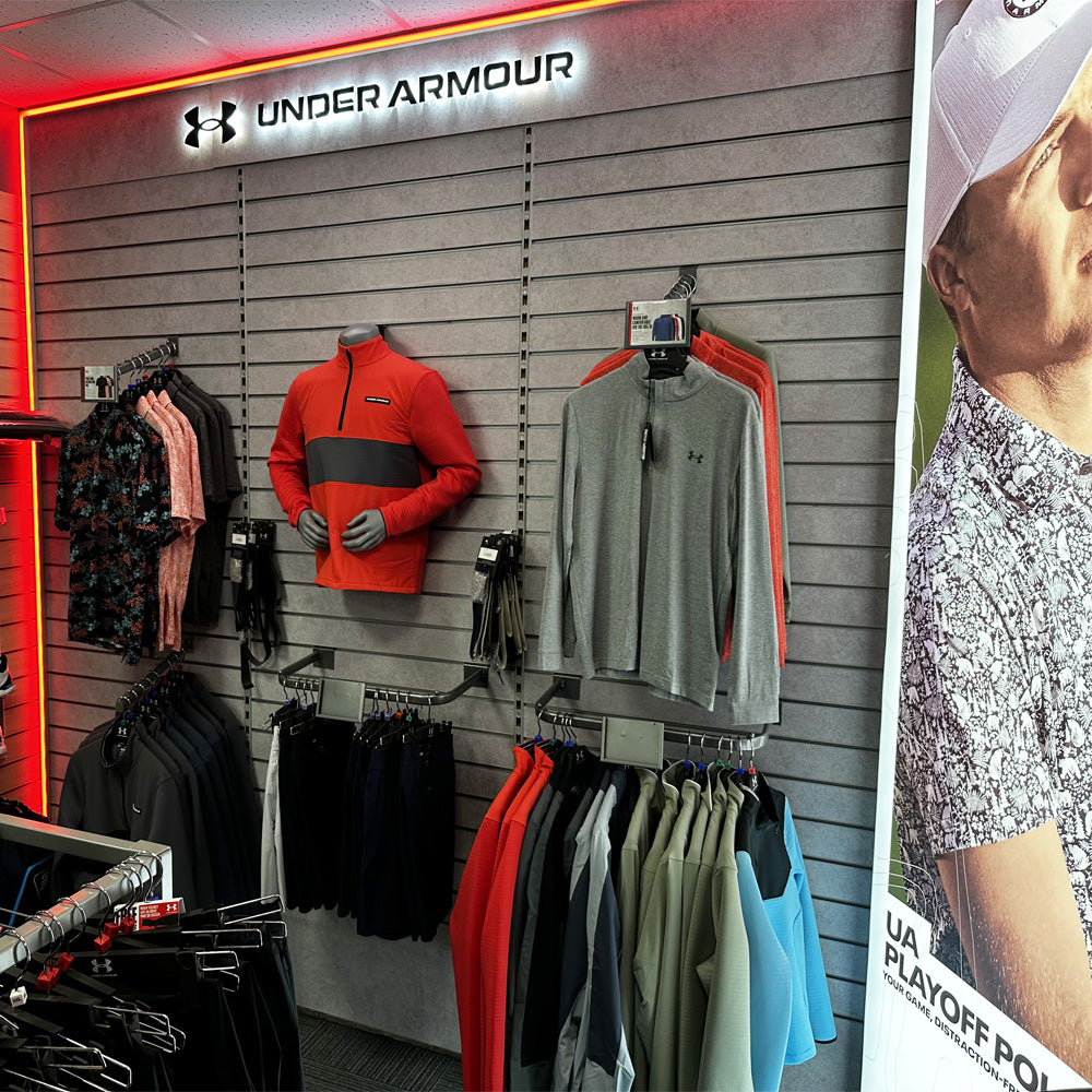 We stock all the major brands, including Under Armour, Galvin Green, FootJoy, Castore, Adidas, Puma, Ping Collection, Forelson, and Mizuno.