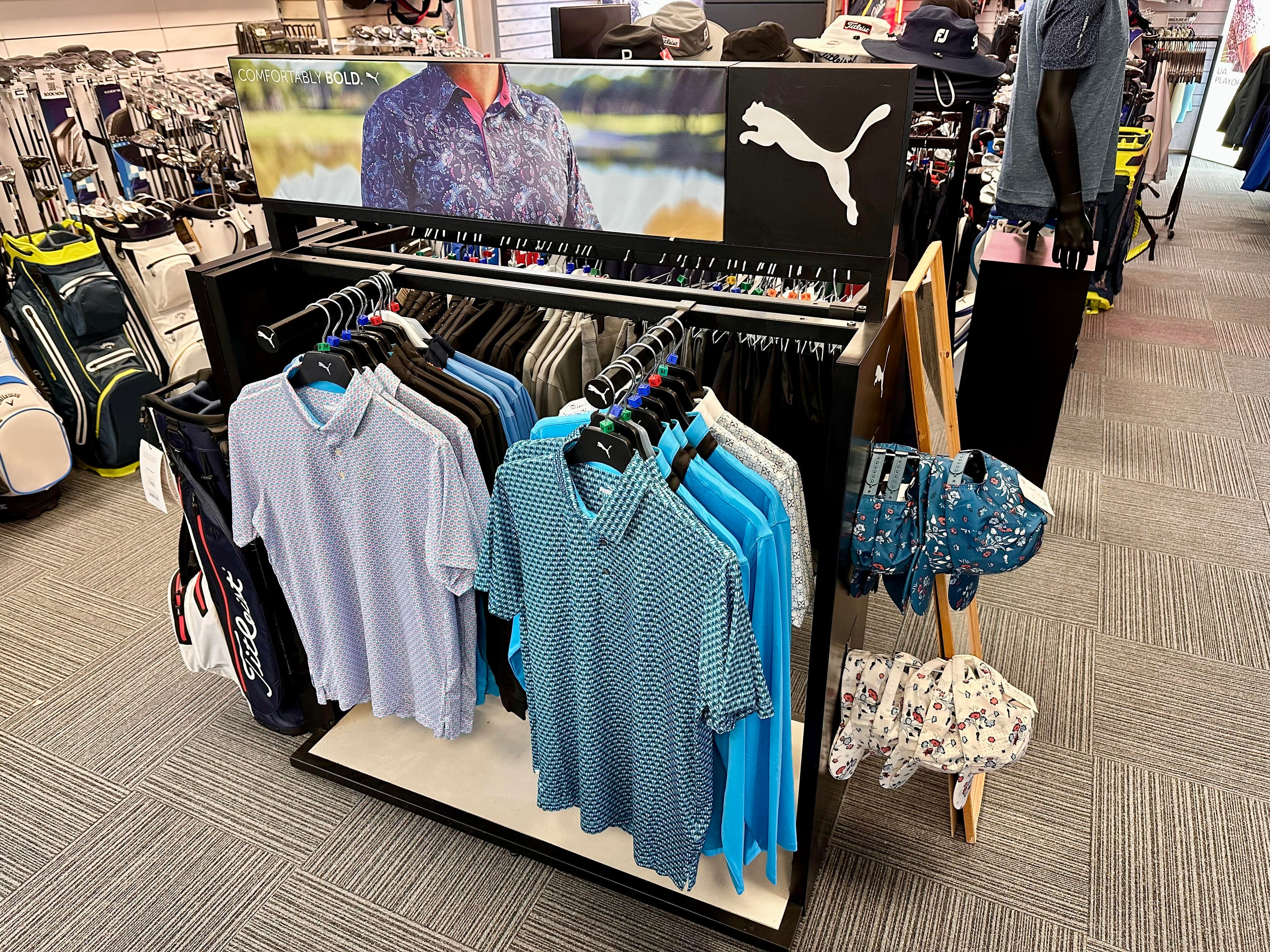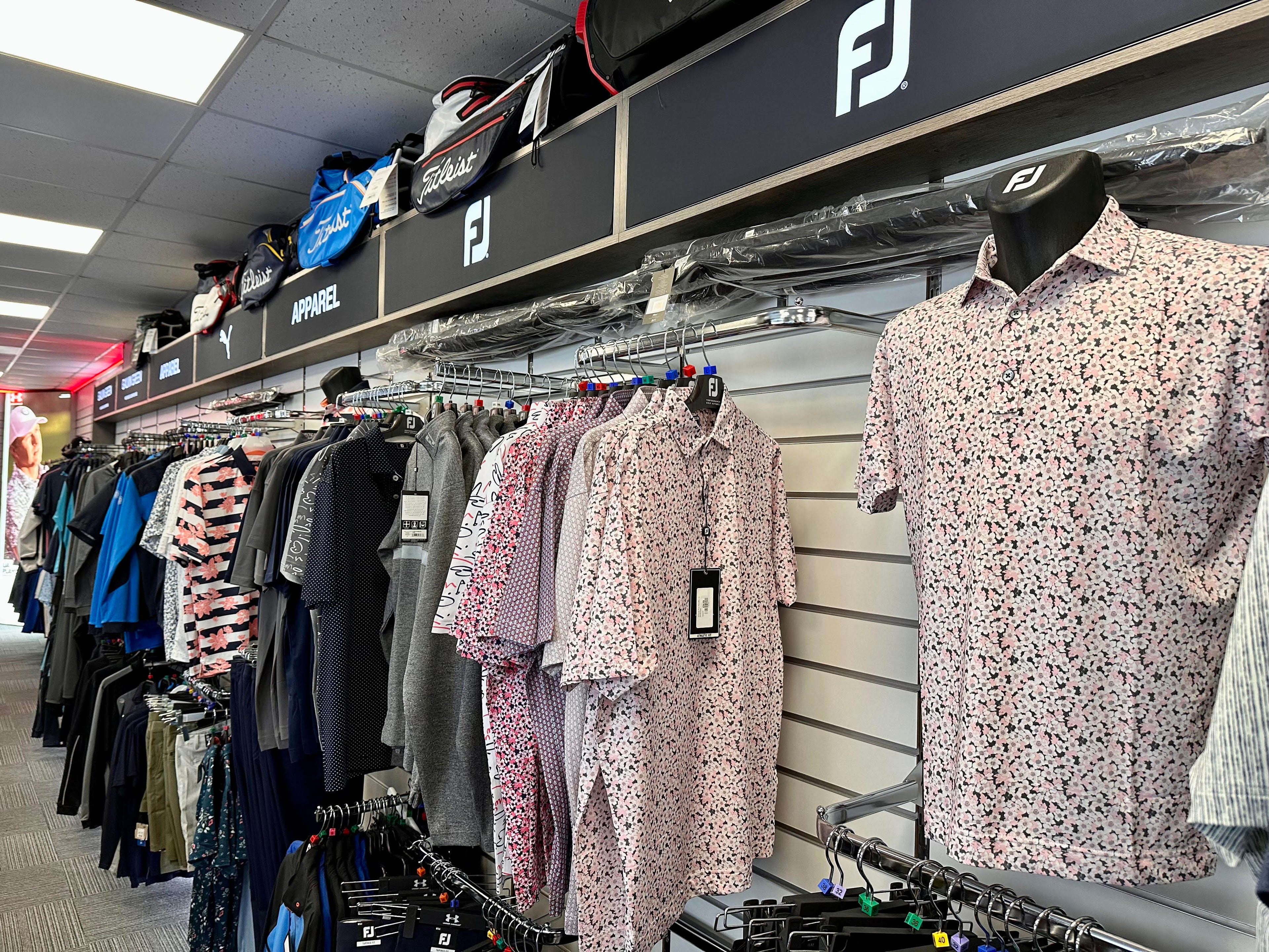 Discover our exclusive selection of golf clothing and apparel at our retail store. We stock all the major brands, including Under Armour, Galvin Green, FootJoy, Castore, Adidas, Puma, Ping Collection, Forelson, and Mizuno. Visit us for personalized service and try on the latest styles for the perfect fit and performance.