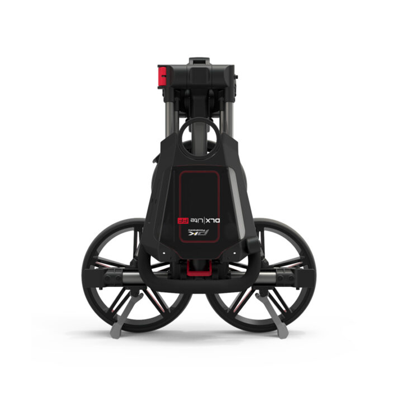 The all-new DLX-Lite FF Push Cart has been cleverly designed with optimum storage in mind. The simple folding and unfolding system allow it to be folded down flat to give slimline compact storage. The innovative flat fold design provides unique options for storage and transportation of your golfing gear.
