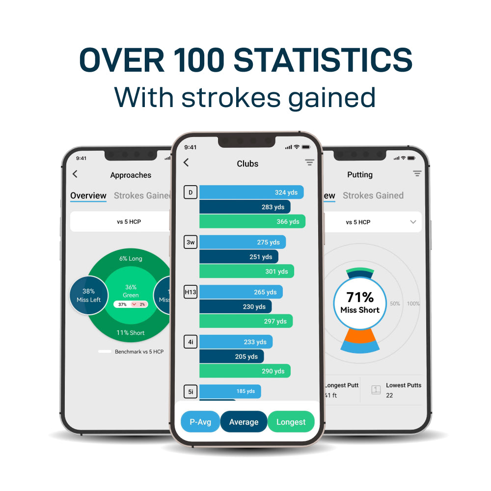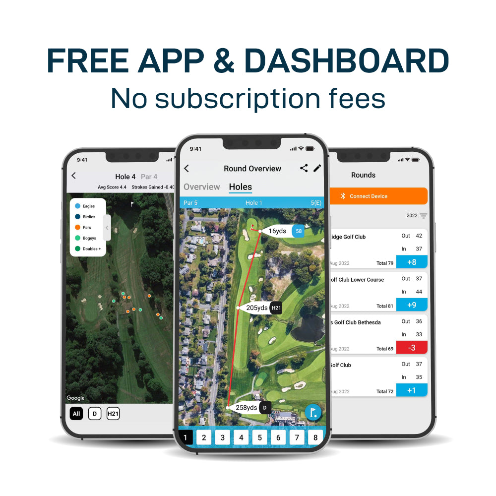 Once holed out, players can record their score quickly and easily with the built-in digital scorecard – never lose a scorecard again! V5 comes with 16 x lightweight tracking tags that automatically record every shot hit on the course to provide golfers with valuable insight into their game post-round.